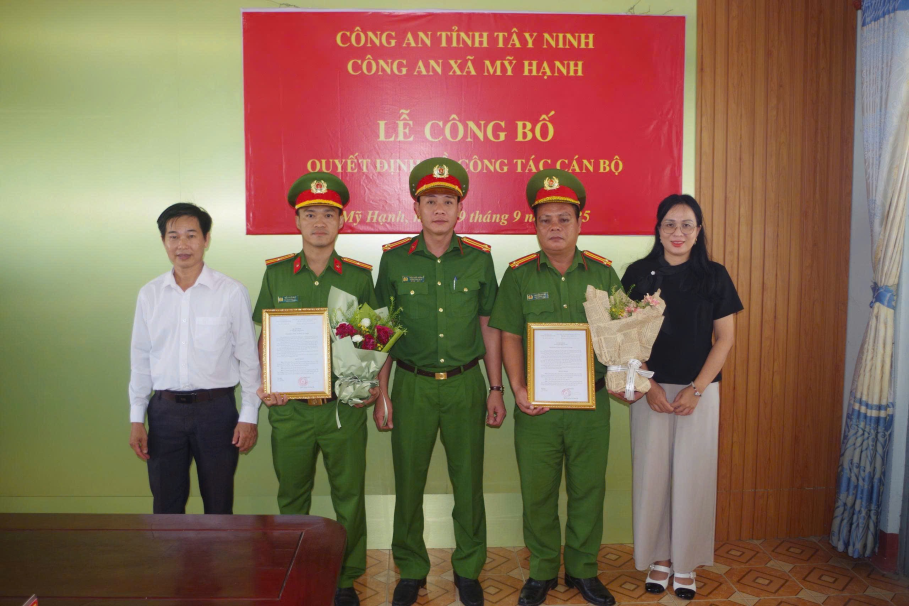 Công an xã Mỹ Hạnh long trọng tổ chức Lễ công bố Quyết định của Giám đốc Công an tỉnh Tây Ninh về công tác cán bộ. Dự và chủ trì buổi lễ có đồng chí Đồng chí Nguyễn Văn Bến - Phó Bí thư Đảng ủy xã; Đồng chí Phan Xuân Trang - Phó Chủ tịch UBND xã; Ban Chỉ huy và cán bộ, chiến sỹ Công an xã Mỹ Hạnh và xã Hiệp Hòa.