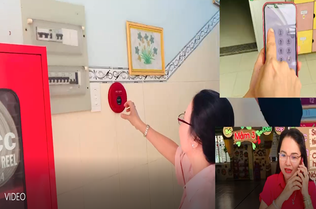 Hoạt động diễn ra ngay tại khuôn viên trường, mô phỏng tình huống cháy tại khu vực bếp ăn do sự cố tràn dầu khi nấu ăn - một tình huống sát thực tế, dễ phát sinh. Diễn biến tình huống giả định: Ngay khi chuông báo động vang lên: Tổ thông tin nhanh chóng báo động, liên hệ lực lượng chức năng. Tổ hướng dẫn thoát nạn lập tức đưa trẻ và giáo viên đến khu vực tập kết an toàn.Tổ chữa cháy phối hợp cùng tổ di chuyển tài sản sử dụng bình chữa cháy xách tay và hệ thống vòi phun tường để khống chế đám cháy, ngăn lửa lan rộng. Tổ bảo vệ đảm bảo chốt chặn khu vực cháy, không cho người không có phận sự ra vào, bảo vệ tài sản cứu được, hướng dẫn các lực lượng chi viện vào tham gia chữa cháy.
