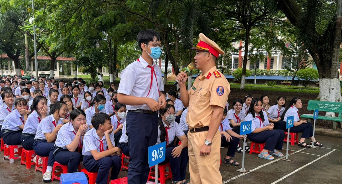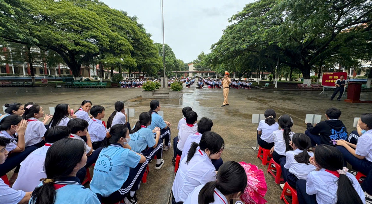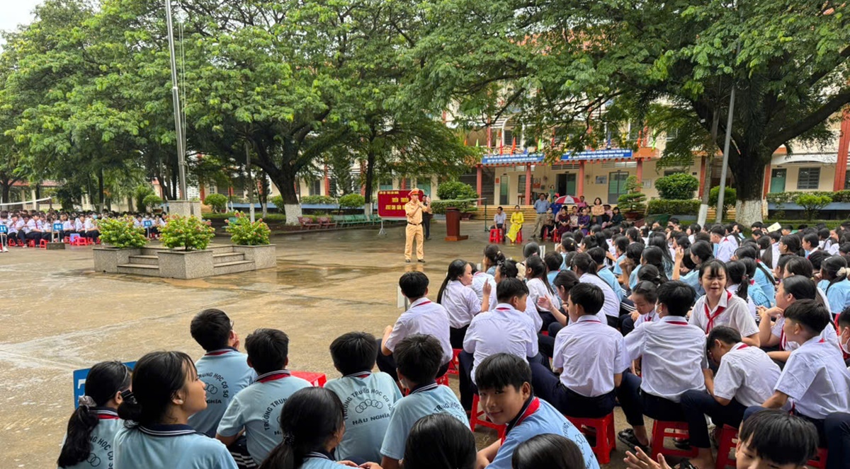 Ngày 22/9, Phòng Cảnh sát giao thông, Công an tỉnh tổ chức tuyên truyền pháp luật về trật tự an toàn giao thông cho học sinh trường THCS Hậu Nghĩa (xã Hậu Nghĩa, tỉnh Tây Ninh).