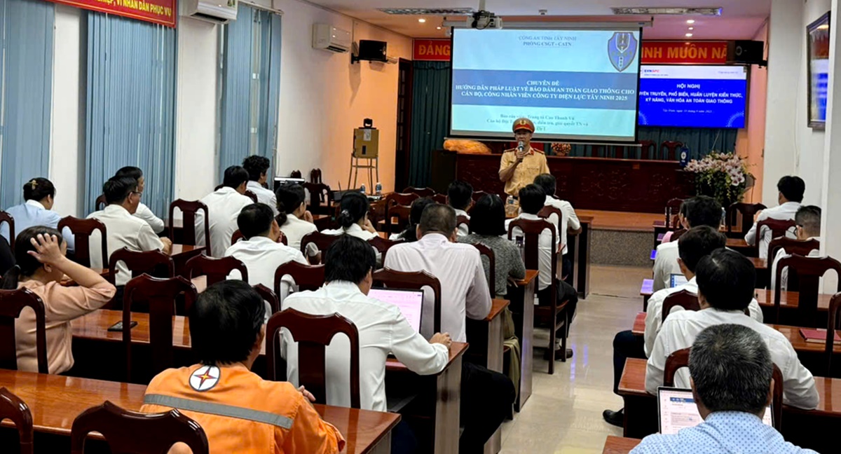 Sáng 23/9, Công ty Điện lực Tây Ninh phối hợp cùng Phòng Cảnh sát giao thông, Công an tỉnh Tây Ninh tổ chức Hội nghị Tuyên truyền, phổ biến, huấn luyện kiến thức, kỹ năng văn hóa an toàn giao thông (ATGT) đến cán bộ, nhân viên tại đơn vị.