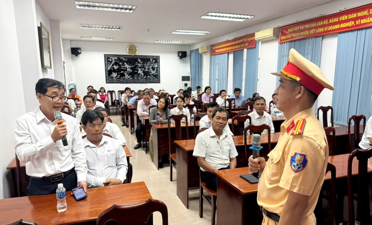 Trong không khí cởi mở, các cán bộ, nhân viên Công ty Điện lực Tây Ninh đã tích cực thảo luận, đặt câu hỏi và được cán bộ cảnh sát giao thông tỉnh giải đáp cụ thể những thắc mắc liên quan đến an toàn giao thông.