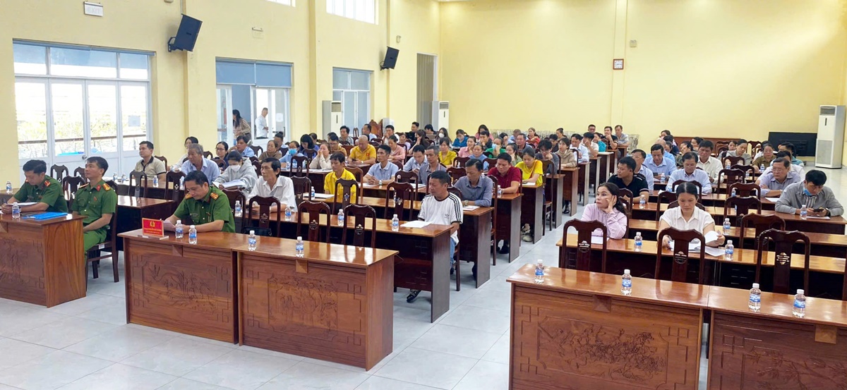 Tại Hội nghị, đại diện Công an xã đã phổ biến các nội dung quan trọng liên quan đến trật tự an toàn giao thông đường bộ, an ninh trật tự, công tác phòng cháy, chữa cháy, cứu nạn, cứu hộ (PCCC&CNCH) và phòng, chống ma túy, kêu gọi người dân tích cực tham gia phong trào toàn dân bảo vệ an ninh Tổ quốc, phát hiện, tố giác tội phạm ma túy, xây dựng địa bàn an toàn, lành mạnh, không để hình thành điểm nóng về tệ nạn xã hội.