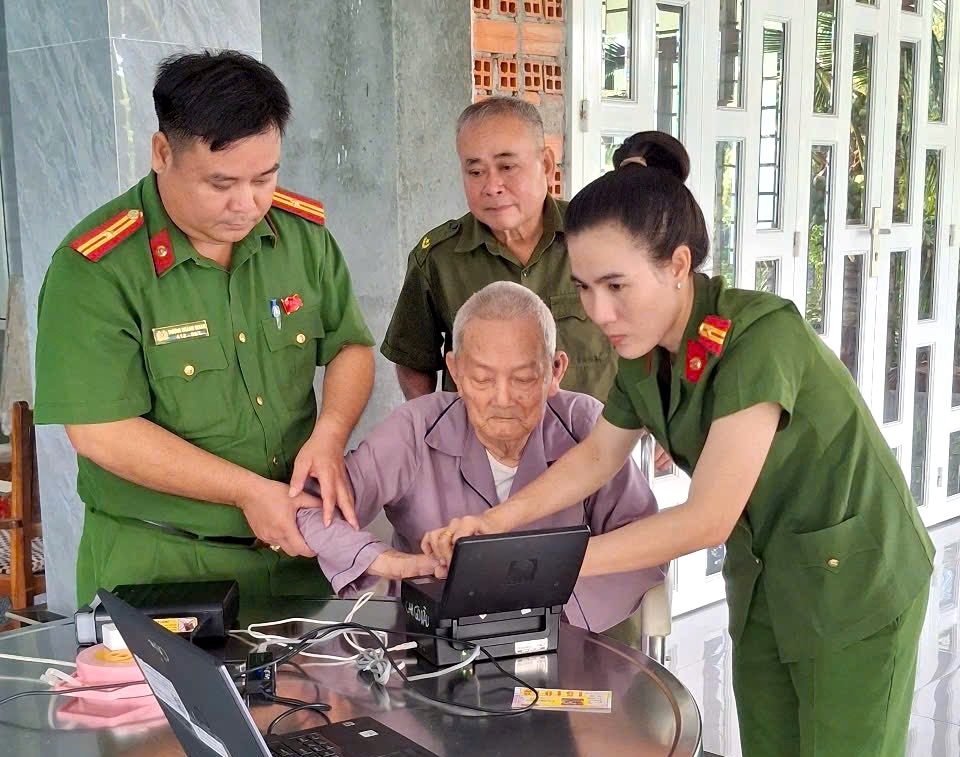 Với tinh thần tận tâm phục vụ, Công an phường Gò Dầu đã trực tiếp đến hộ gia đình để làm CCCD cho người cao tuổi đi lại khó khăn.