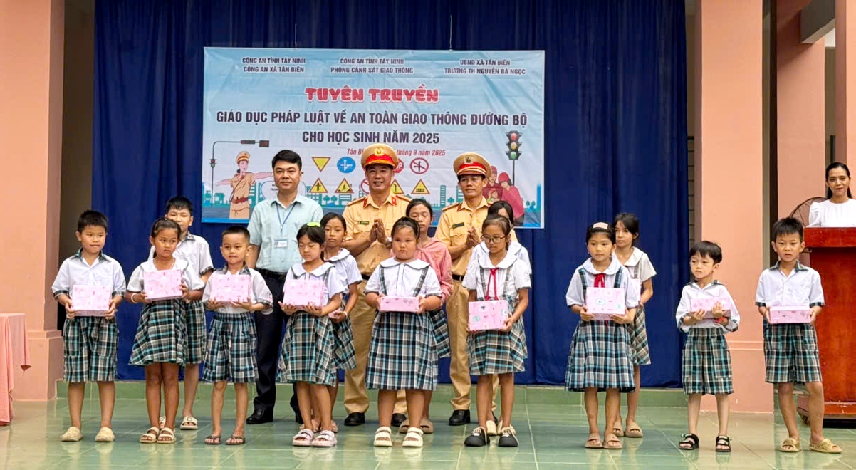 Ngày 26/9, Phòng Cảnh sát giao thông, Công an tỉnh Tây Ninh phối hợp với Công an xã Tân Biên tổ chức tuyên truyền, giáo dục pháp luật về an toàn giao thông đường bộ cho 880 em học sinh trường Tiểu học Nguyễn Bá Ngọc thuộc xã Tân Biên, tỉnh Tây Ninh.