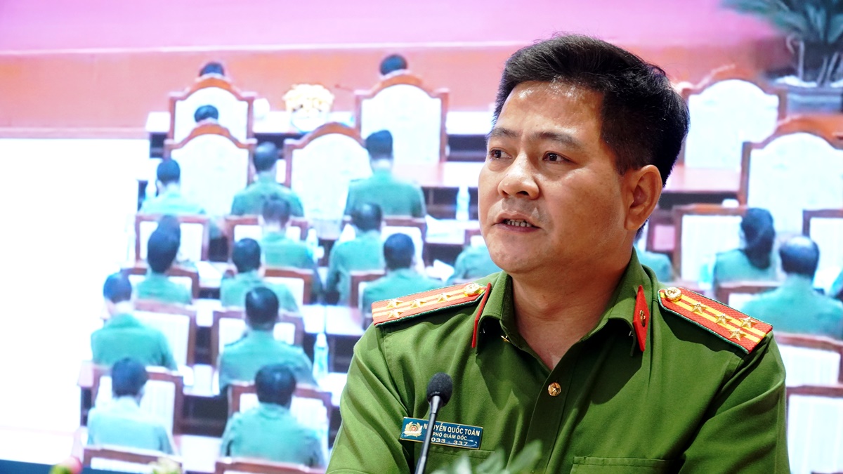 Đại tá Nguyễn Quốc Toàn - Phó Giám đốc, Thủ tưởng Cơ quan CSĐT Công an tỉnh phát biểu.