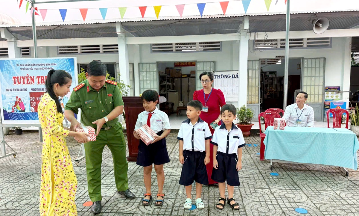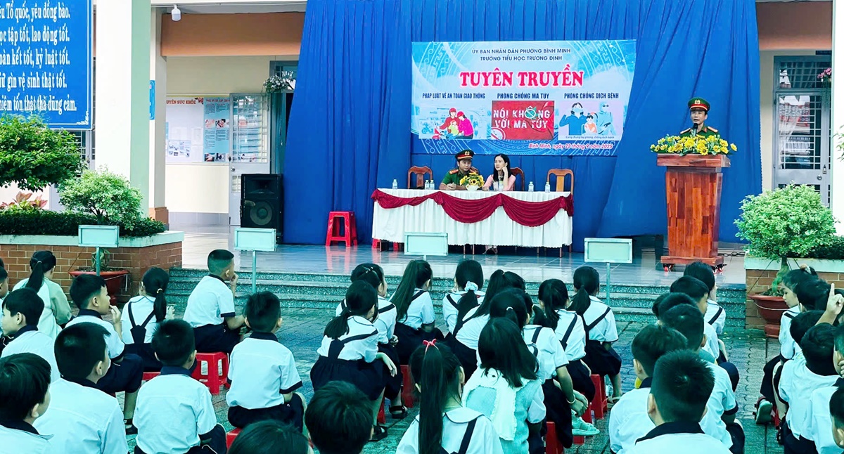 Công an phường Bình Minh vừa tổ chức buổi tuyên truyền cho 300 học sinh trường Tiểu học Trương Định trên địa bàn phường.