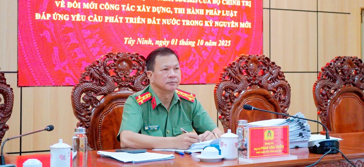 Tại điểm cầu Công an tỉnh Tây Ninh, tham dự Hội nghị có Đại tá Phan Văn Triều - Tỉnh ủy viên, Phó Bí thư Đảng ủy, Phó Giám đốc Công an tỉnh cùng đại diện lãnh đạo các đơn vị nghiệp vụ trực thuộc Công an tỉnh; đại diện Chi hội Luật gia Công an tỉnh.