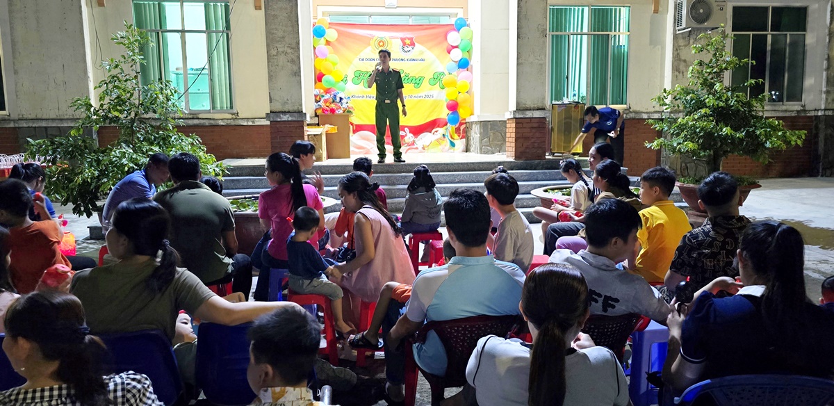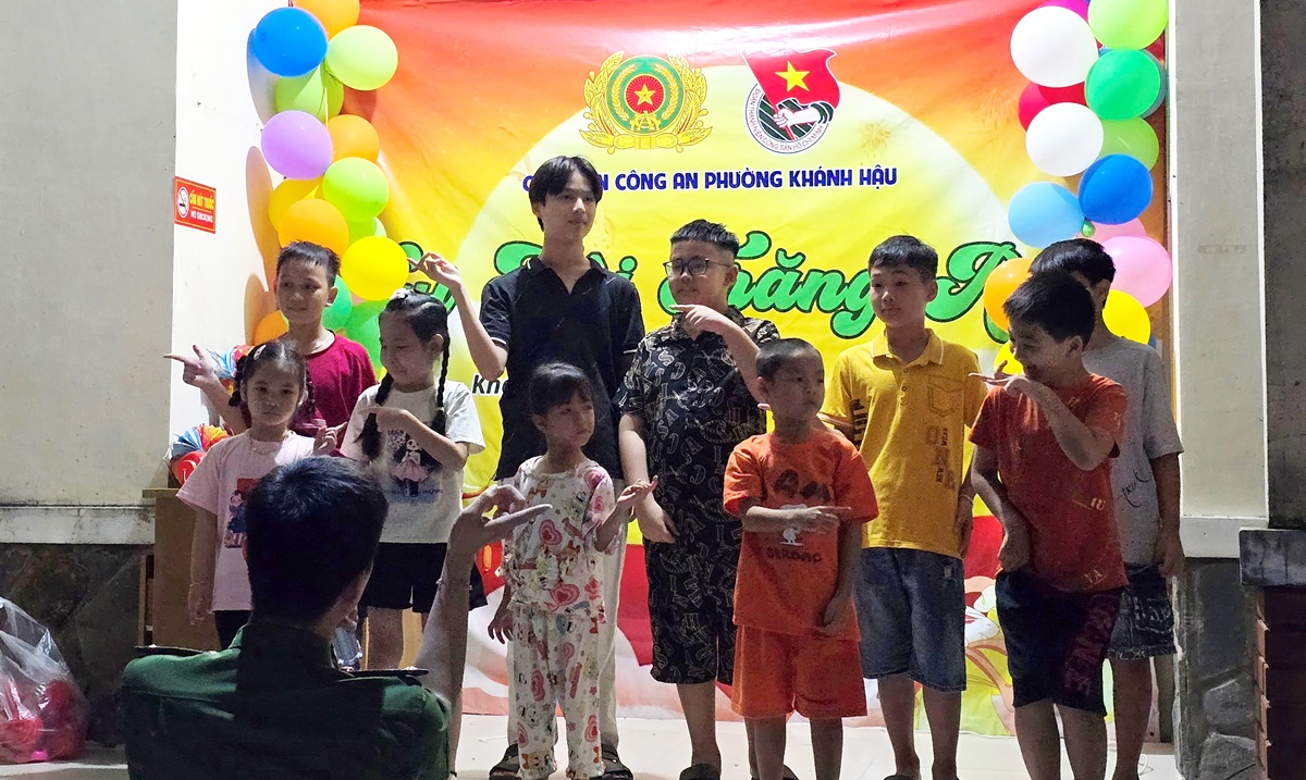 Tối ngày 01/10/2025, Công an phường Khánh Hậu tổ chức chương trình “Đêm trăng rằm”, vui Tết Trung thu cho 40 em thiếu nhi là con của cán bộ, chiến sỹ Công an phường.