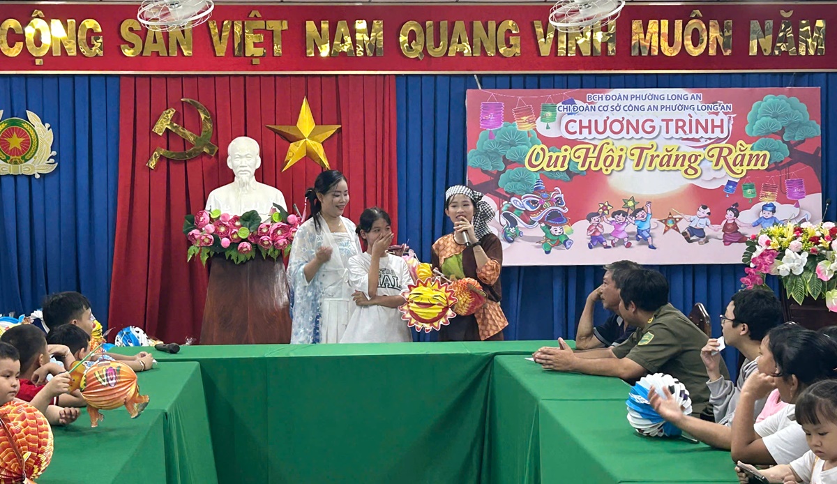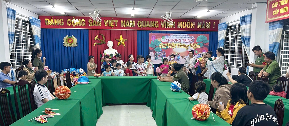 Tối ngày 02/10/2025, Ban Chấp hành Chi đoàn Công an phường Long An tổ chức chương trình “Vui hội trăng rằm” nhân dịp Tết Trung thu cho con cán bộ chiến sỹ trong đơn vị và lực lượng tham gia bảo vệ an ninh trật tự ở cơ sở.