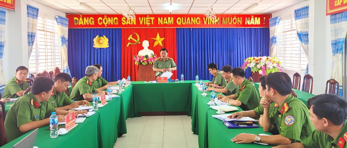 Đại tá Lê Văn Thuận - Phó Giám đốc Công an tỉnh phát biểu chỉ đạo tại buổi làm việc.