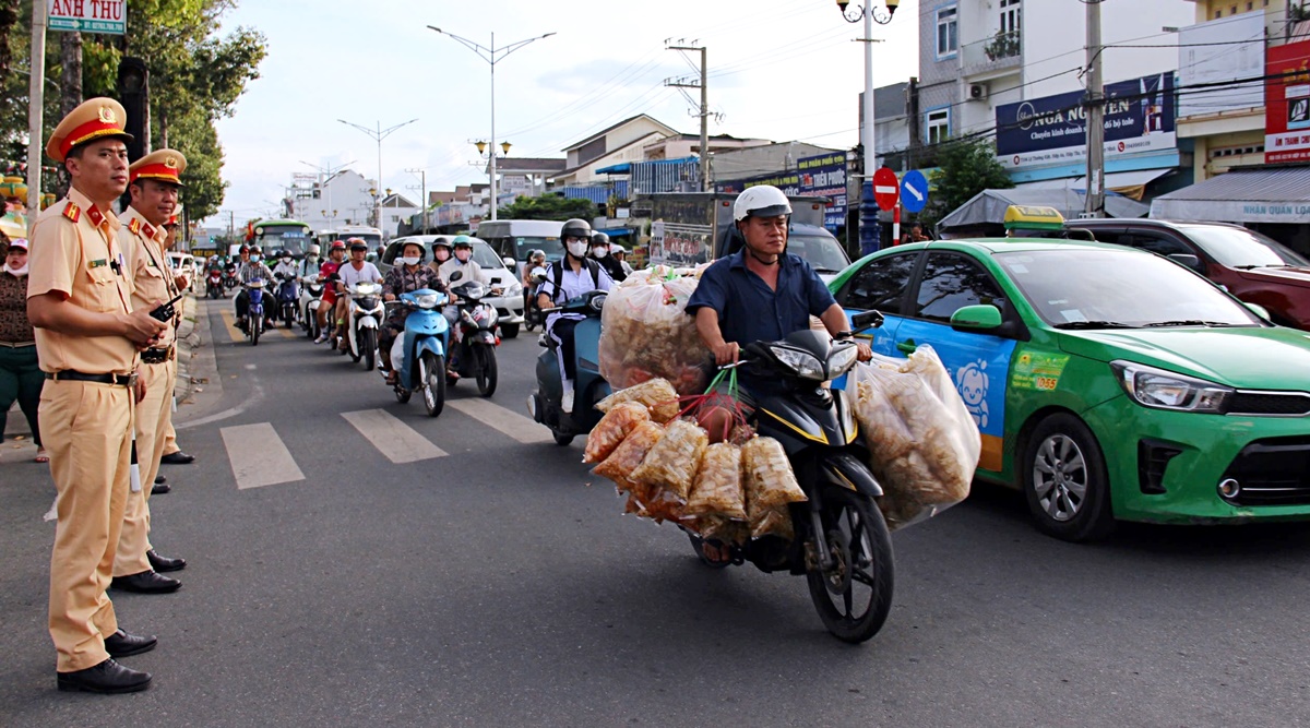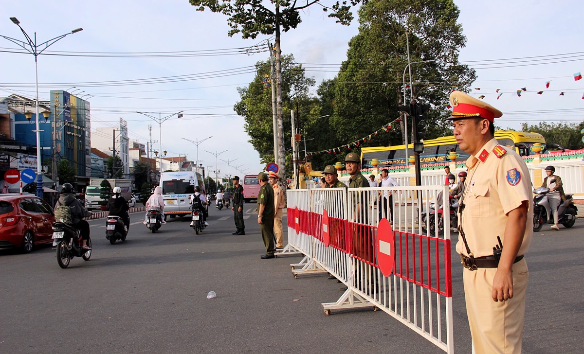 Lực lượng CSGT Công an tỉnh Tây Ninh thực hiện nhiệm vụ tại các giao lộ, đảm bảo trật tự an toàn giao thông cho Hội yến.