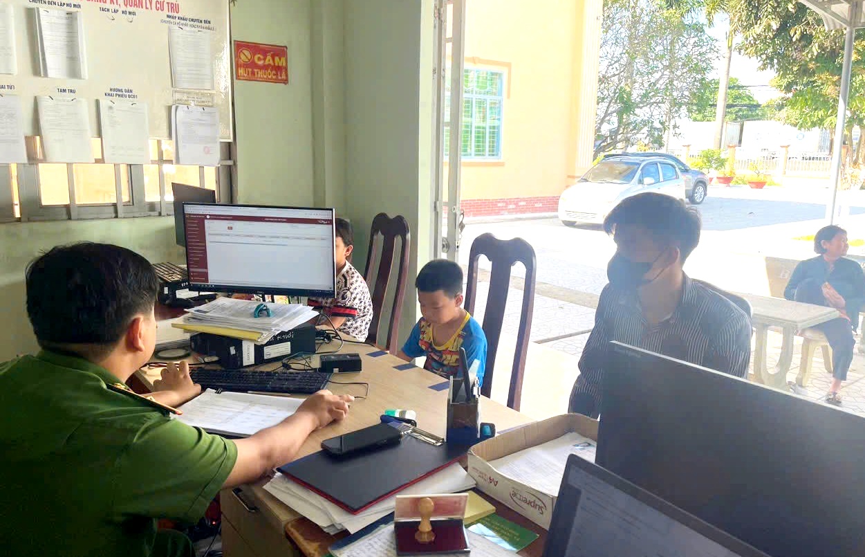 Công an xã Cầu Khởi giải quyết thủ tục hành chính cho người dân.