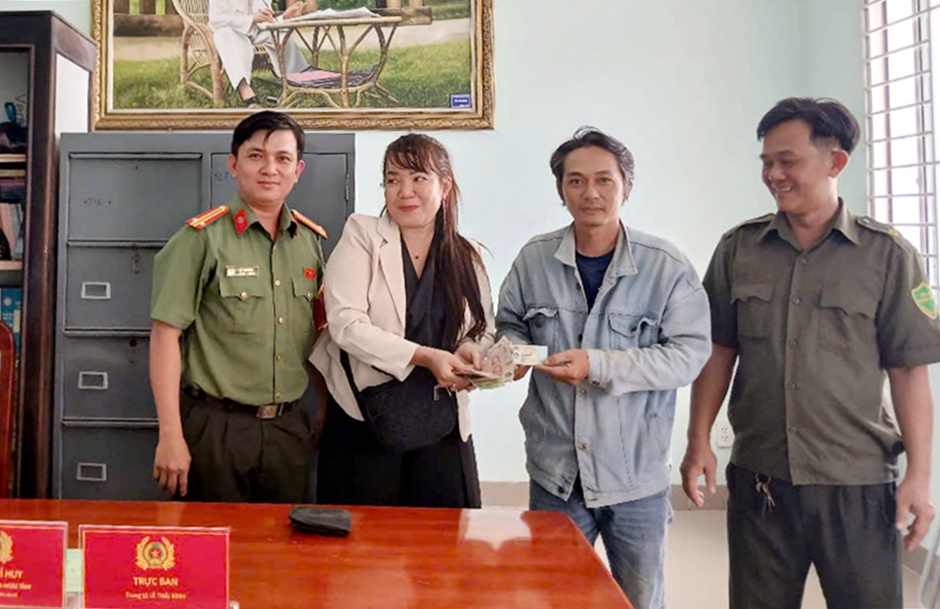 Công an xã Phước Vinh tiếp nhận và trao trả tài sản cho người dân đánh rơi