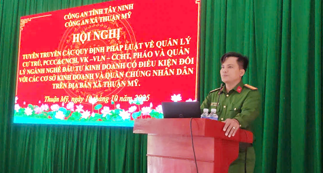 Công an xã Thuận Mỹ vừa tổ chức hội nghị tuyên truyền các quy định của pháp luật về quản lý cư trú, phòng cháy, chữa cháy và cứu nạn cứu hộ; VK-VLN-CCHT, pháo và quản lý ngành nghề đầu tư kinh doanh có điều kiện về an ninh trật tự cho hơn 300 đại diện các cơ sở kinh doanh, lực lượng ANTT cơ sở và Nhân dân trên địa bàn.