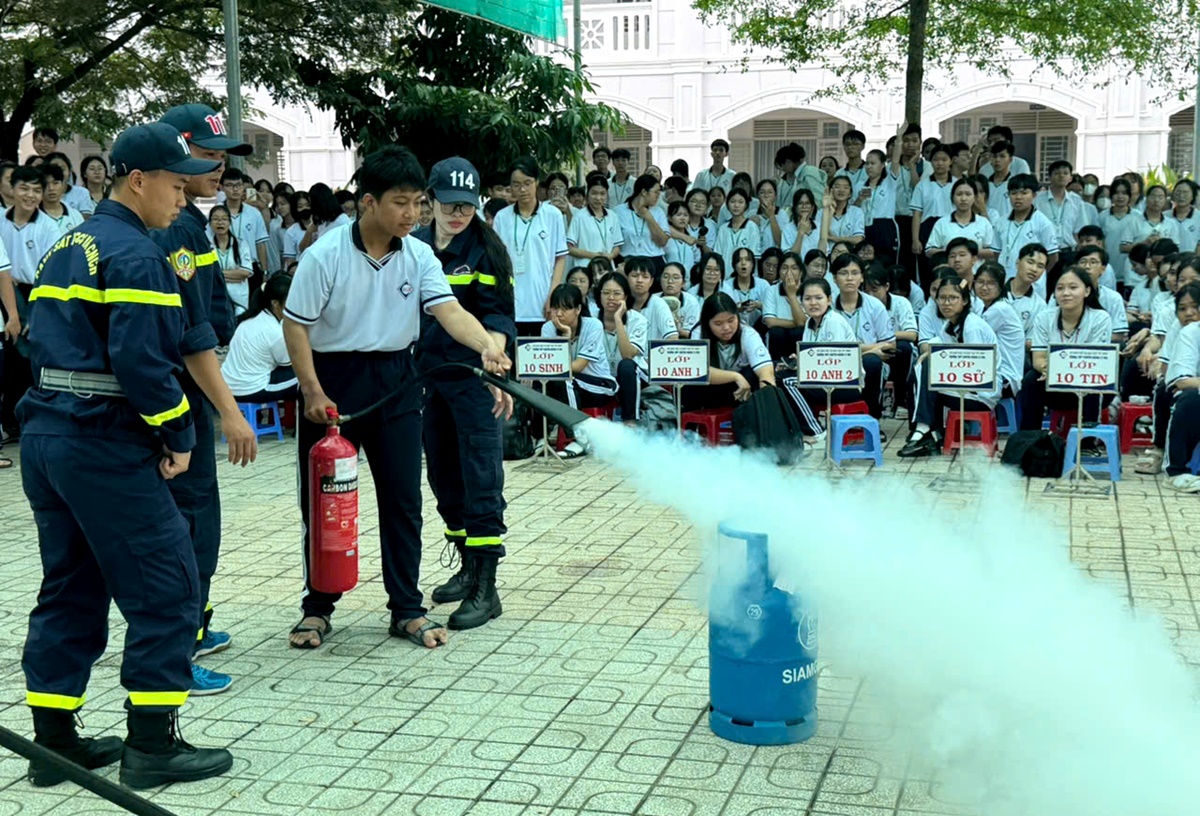Cùng ngày, Đội chữa cháy và cứu nạn cứu hộ khu vực Gò Dầu thuộc Phòng Cảnh sát phòng cháy chữa cháy và cứu nạn cứu hộ (PCCC và CNCH) Công an tỉnh Tây Ninh phối hợp Công an xã Truông Mít tổ chức chương trình tuyên truyền, trải nghiệm, thực hành chữa cháy và CNCH cho hơn 500 học sinh của Trường THPT Nguyễn Văn Trỗi (xã Truông Mít, tỉnh Tây Ninh).