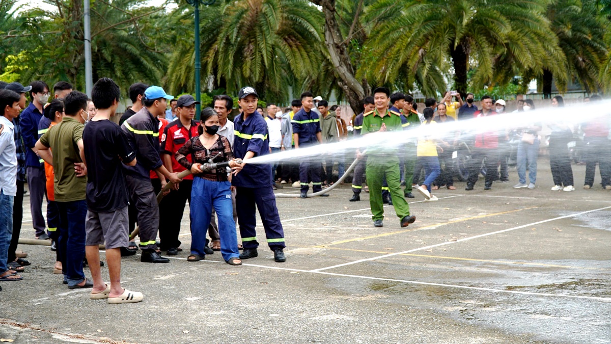 Ngoài ra, các đại biểu còn được trực tiếp tham gia thực hành: cứu người, thoát nạn trong môi trường có nhiều khói; sử dụng bình chữa cháy dập đám cháy do rò rỉ khí gas; rải vòi, phun nước chữa cháy trên xe chuyên dụng... Qua đó, giúp mỗi người dân rèn luyện kỹ năng thao tác, phản xạ nhanh và xử lý linh hoạt trong các tình huống thực tế có thể xảy ra.