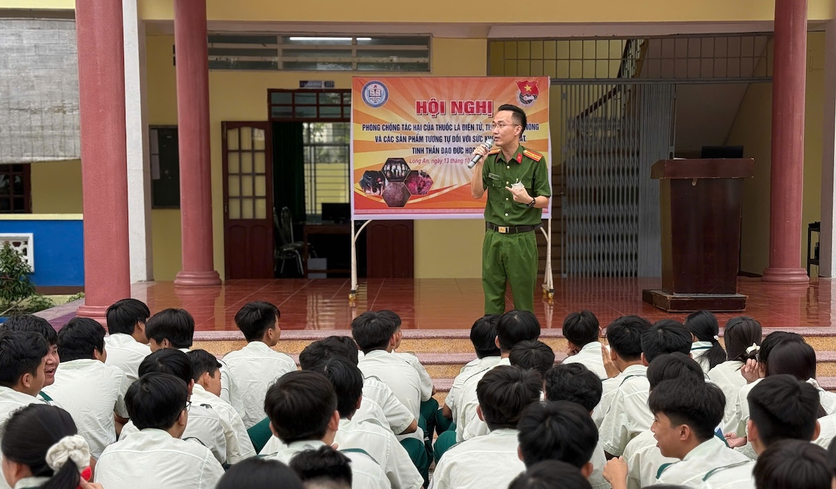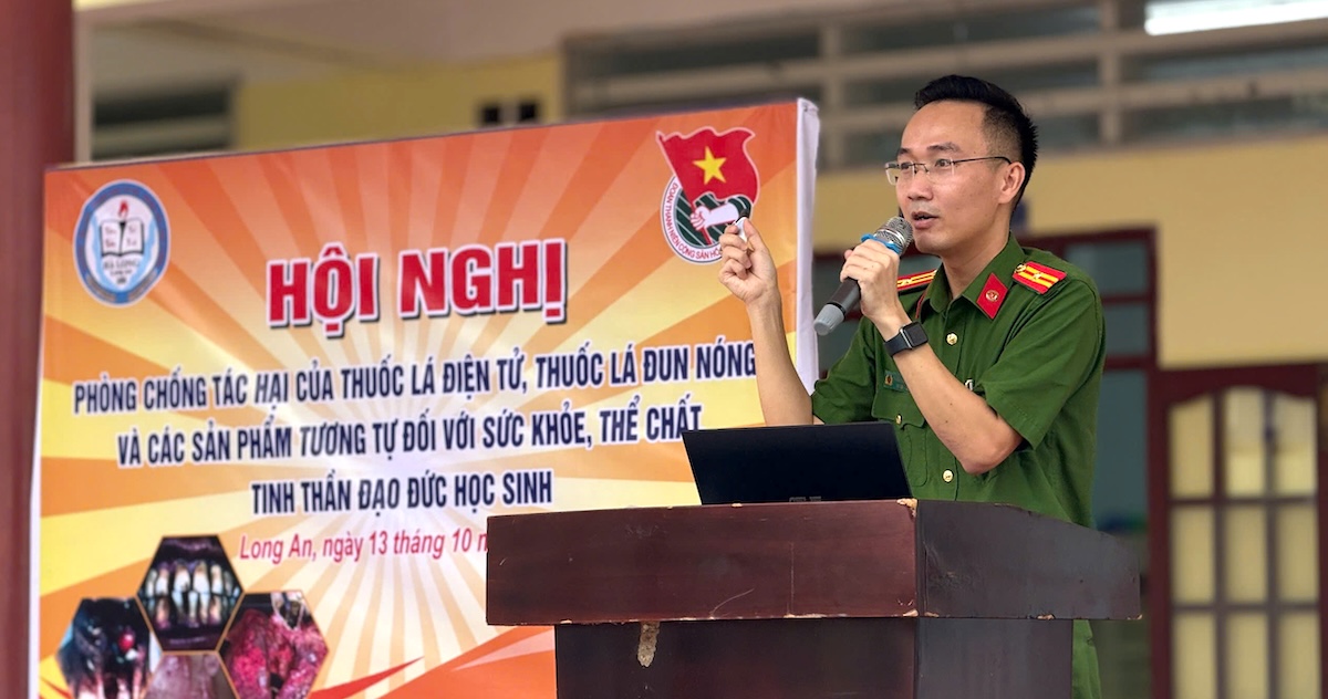Sáng nay (13/10/2025), Phòng Công tác chính trị Công an tỉnh Tây Ninh phối hợp trường Tiểu học, THCS, THPT Hà Long, phường Long An tổ chức hoạt động tuyên truyền chuyên đề “Tác hại thuốc lá điện tử, thuốc lá đun nóng và các sản phẩm tương tự đối với sức khoẻ, thể chất, tinh thần học sinh”.