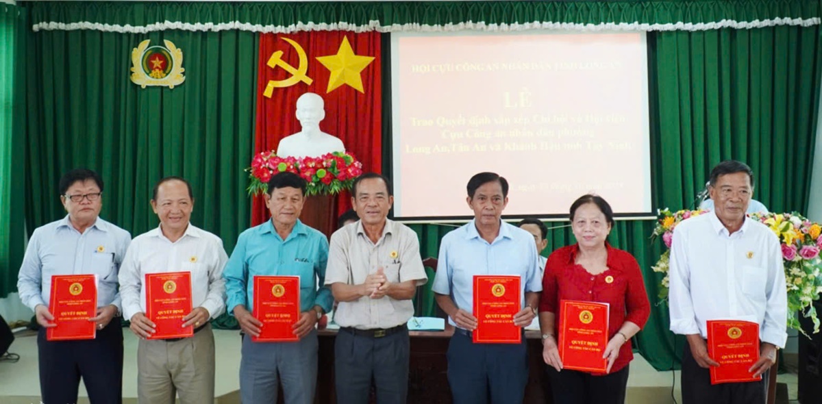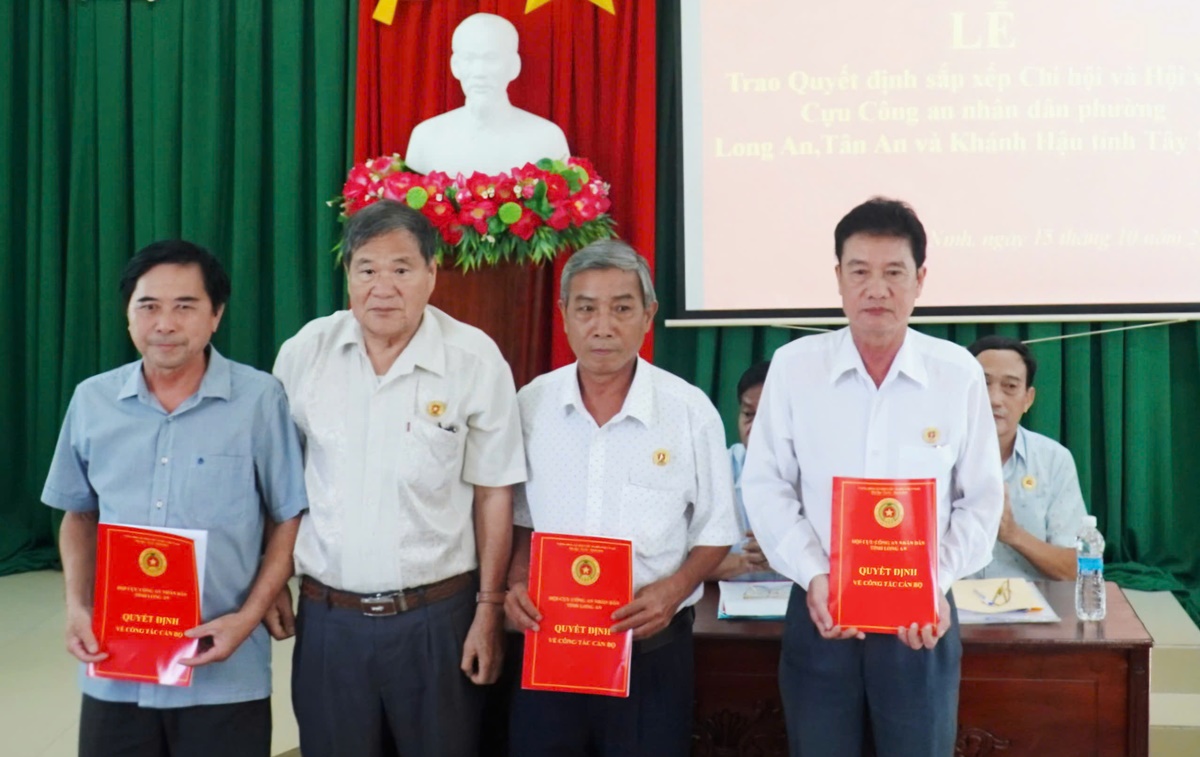 Theo đó, sắp xếp các Chi hội và Hội viên Cựu CAND các phường 1, 3, 4, 5, 6 thuộc TP. Tân An và một bộ phận hội viên xã Bình Thành thuộc huyện Thủ Thừa, tỉnh Long An (trước sáp nhập) thành Chi hội Cựu CAND phường Long An, tỉnh Tây Ninh và chỉ định đồng chí Nguyễn Văn Lưu, nguyên Trưởng Công an huyện làm Chi hội trưởng; sắp xếp các Chi hội Cựu CAND phường 7 và các xã Bình Tâm, Nhơn Thạnh Trung, An Vĩnh Ngãi thuộc Tp. Tân An, tỉnh Long An (trước sáp nhập) thành Chi hội Cựu CAND phường Tân An, tỉnh Tây Ninh và chỉ định đồng chí Nguyễn Văn Chính, nguyên Trưởng phòng nghiệp vụ Công an tỉnh làm Chi hội trưởng; sắp xếp các Chi hội Cựu CAND các phường Tân Khánh, Khánh Hậu và xã Lợi Bình Nhơn thuộc Tp. Tân An, tỉnh Long An (trước sáp nhập) thành Chi hội Cựu CAND phường Khánh Hậu, tỉnh Tây Ninh và chỉ định đồng chí Hồ Văn Bế, nguyên Phó Trưởng phòng nghiệp vụ Công an tỉnh làm Chi hội trưởng.