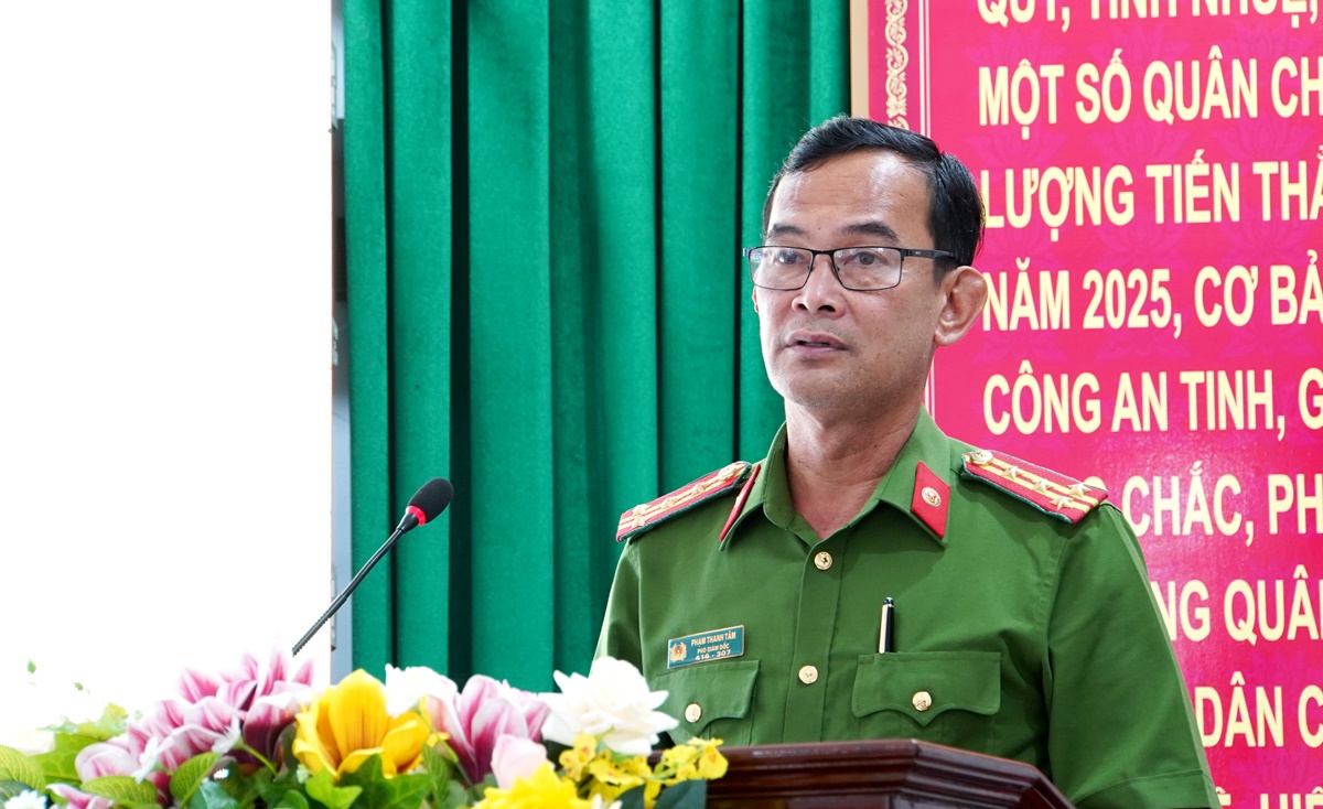 Đại tá Phạm Thanh Tâm - Phó Giám đốc Công an tỉnh phát biểu chỉ đạo tại hội nghị.