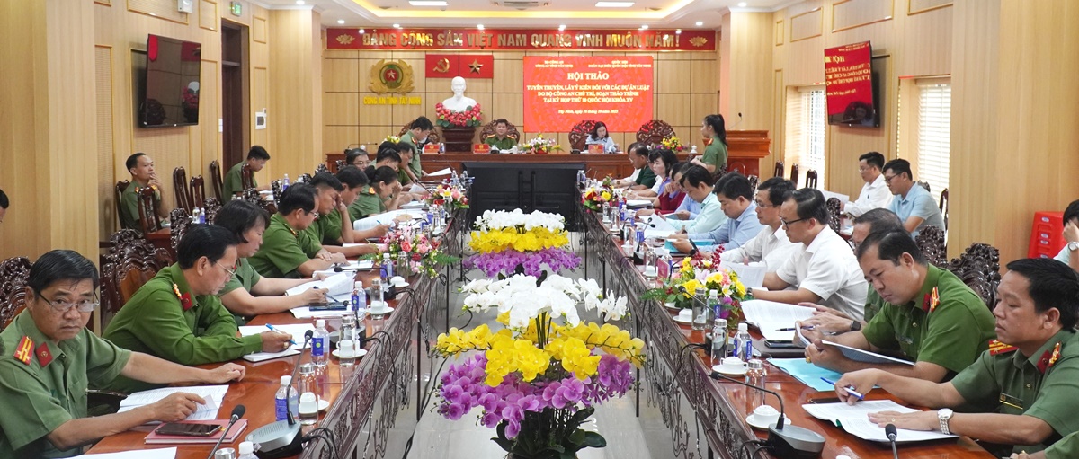 Dự Hội thảo có các đồng chí: Lê Thị Song An - Tỉnh ủy viên, Phó Trưởng đoàn chuyên trách Đoàn đại biểu Quốc hội tỉnh; đồng chí Nguyễn Hoàng Uyên - đại biểu Quốc hội Đoàn đại biểu Quốc hội tỉnh. Tham dự Hội thảo có đại diện lãnh đạo các ban, sở, ngành cấp tỉnh; đại diện các phòng nghiệp vụ Công an tỉnh.