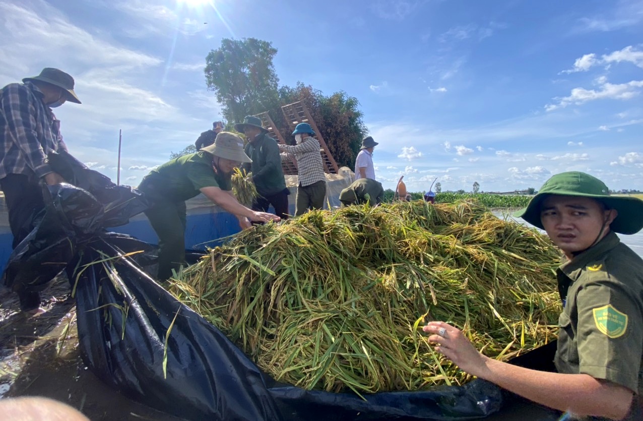 Trước tình hình đó, Công an xã Vĩnh Hưng đã chủ động phối hợp cùng lực lượng An ninh cơ sở, BCH quân sự xã huy động hơn 30 cán bộ, đoàn viên, thanh niên khẩn trương xuống đồng hỗ trợ người dân thu hoạch lúa chạy lũ, vận chuyển về nơi khô ráo, an toàn. Sau một ngày triển khai, lực lượng đã giúp thu hoạch trên 05 ha lúa của 02 hộ dân, kịp thời giảm thiểu thiệt hại, ổn định sản xuất sau thiên tai.