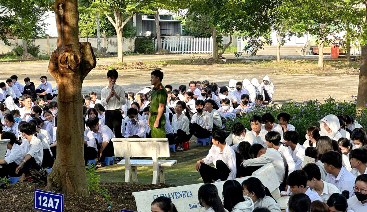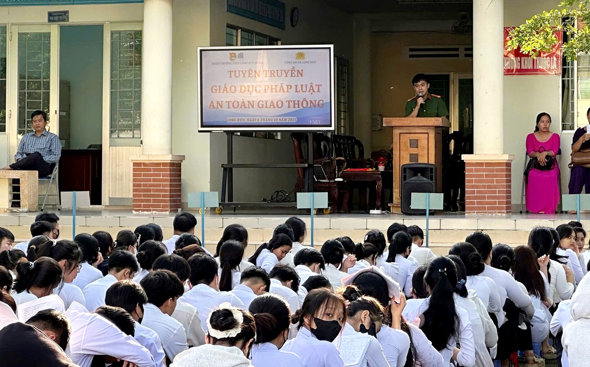 Công an xã Long Hựu phối hợp Trường THPT Long Hựu Đông tổ chức tuyên truyền, giáo dục pháp luật an toàn giao thông cho giáo viên, học sinh tại Trường THPT Long Hựu Đông.