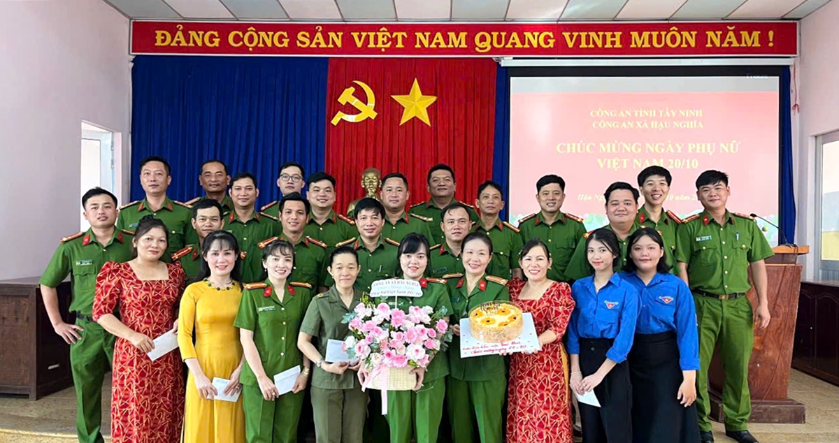 Hướng tới kỷ niệm 95 năm Ngày thành lập Hội Liên hiệp phụ nữ Việt Nam (20/10/1930 - 20/10/2025), sáng ngày 17/10/2025, Công an xã Hậu Nghĩa tổ chức gặp mặt chúc mừng Chi hội phụ nữ Công an xã. Thượng tá Trần Đình Hạnh - Bí thư Đảng ủy, Trưởng Công an xã, đồng chí Trung tá Nguyễn Thị Thanh Tuyền - Chi hội trưởng Chi hội phụ nữ, Phó Trưởng Công an xã cùng tập thể lãnh đạo, cán bộ, chiến sỹ Công an xã dự buổi gặp mặt.
