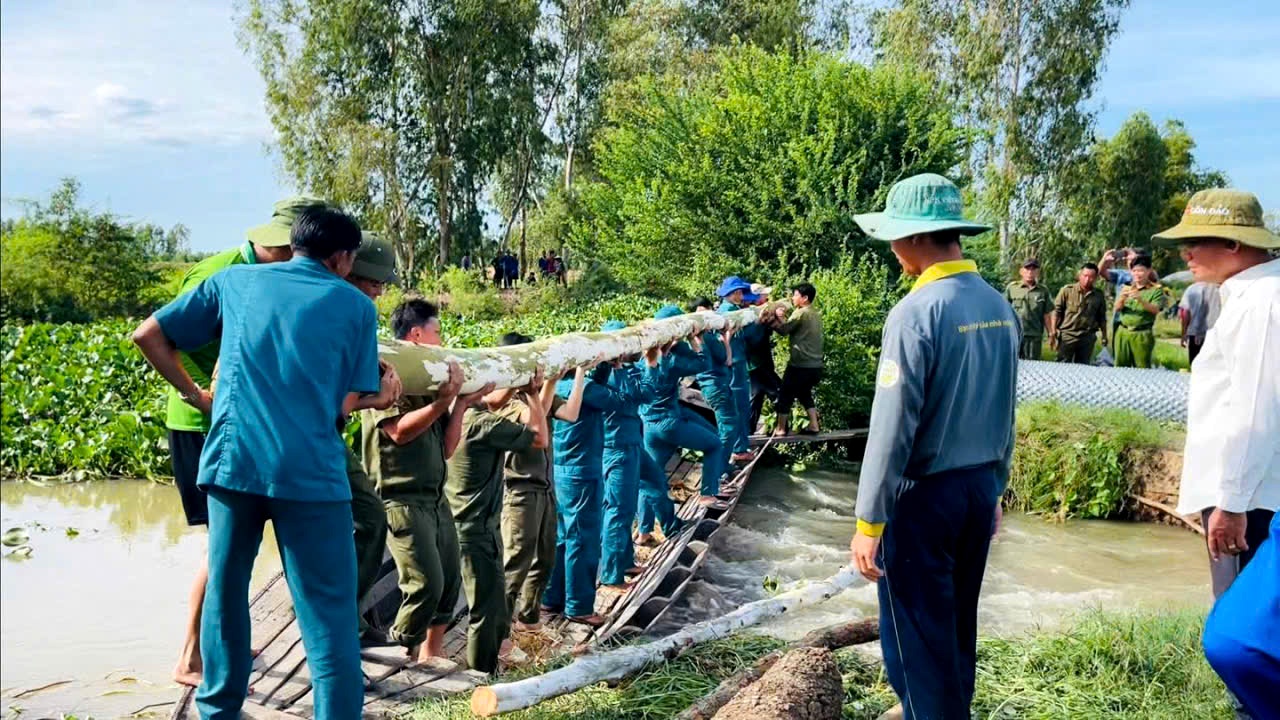 Trong những ngày giữa tháng 10/2025, do ảnh hưởng của mưa lớn kéo dài, nhiều địa phương trên địa bàn tỉnh Tây Ninh xuất hiện tình trạng nước lũ dâng cao, gây vỡ đê bao, đe dọa nghiêm trọng đến sản xuất nông nghiệp và đời sống của người dân. Trước tình hình đó, lực lượng Công an xã tại các địa phương đã phát huy tinh thần trách nhiệm, chủ động phối hợp cùng các lực lượng chức năng và nhân dân khẩn trương triển khai các hoạt động ứng cứu, hỗ trợ người dân vượt qua khó khăn.