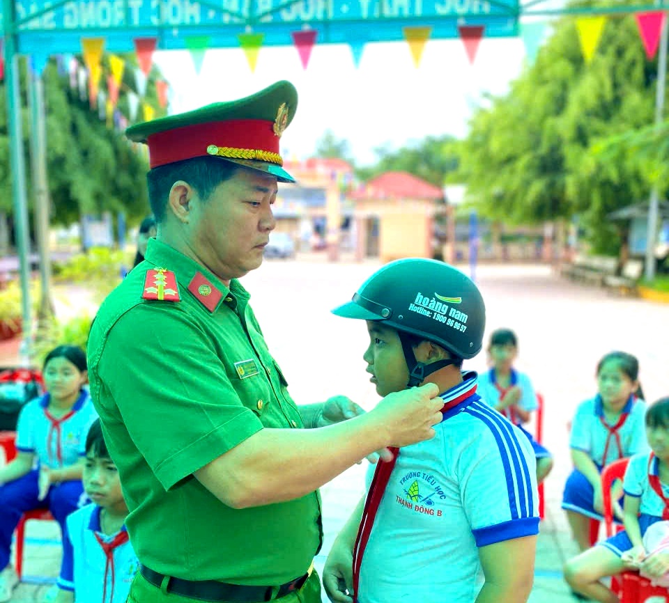Nhân dịp này, để động viên và hỗ trợ các em học sinh có hoàn cảnh khó khăn, Công an xã Tân Châu đã trao tặng 15 chiếc mũ bảo hiểm đạt chuẩn cho 15 em học sinh, góp phần nâng cao ý thức chấp hành đội mũ bảo hiểm và đảm bảo an toàn cho các em khi tham gia giao thông.