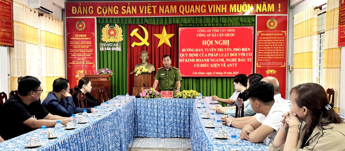 Tại hội nghị, Thượng tá Nguyễn Văn Được - Trưởng Công an xã thông tin về tình hình an ninh, trật tự trên địa bàn xã; đồng thời liên quan đến hoạt động kinh doanh có điều kiện về ANTT; phổ biến, hướng dẫn các quy định của pháp luật về quản lý ngành nghề đầu tư, kinh doanh có điều kiện về ANTT, phòng cháy chữa cháy, phòng chống ma tuý, mại dâm, và các chế tài xử lý vi phạm,…. Đặc biệt, các cơ sở kinh doanh đã được hướng dẫn ký bản cam kết chấp hành nghiêm túc các quy định của pháp luật về an ninh trật tự, phòng chống tội phạm, phòng cháy chữa cháy, quản lý người lao động, khách lưu trú… nhằm nâng cao trách nhiệm, ý thức tự giác của chủ cơ sở.