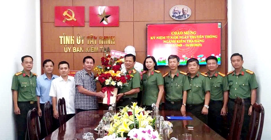 Trước đó, Đoàn công tác Công an tỉnh Tây Ninh do Đại tá Phan Văn Triều - Phó Bí thư Đảng ủy, Phó Giám đốc Công an tỉnh làm Trưởng đoàn đã đến thăm, chúc mừng Ủy ban Kiểm tra Tỉnh ủy. Tại buổi gặp mặt, lãnh đạo hai đơn vị cùng nhau ôn lại lịch sử truyền thống của ngành Kiểm tra Đảng, chia sẻ kinh nghiệm trong công tác kiểm tra, giám sát, đồng thời bày tỏ quyết tâm tiếp tục phát huy tinh thần chủ động, đoàn kết, sáng tạo trong thực hiện nhiệm vụ chính trị được giao.