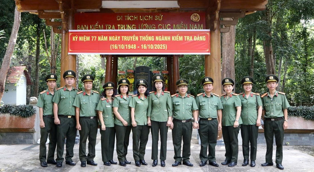 Tiếp đó, vào ngày 16/10/2025, đơn vị đã tổ chức hành trình về nguồn, dâng hương viếng bia tưởng niệm ngành Kiểm tra Đảng tại Khu di tích Trung ương Cục miền Nam. Tại nhà bia Di tích lịch sử Ban Kiểm tra Trung ương Cục miền Nam, đoàn cán bộ UBKT Đảng ủy Công an tỉnh đã ôn lại truyền thống 77 năm Ngày truyền thống ngành kiểm tra Đảng. Đoàn dâng hương, dâng hoa và dành một phút mặc niệm bày tỏ lòng biết ơn vô hạn đối với công lao to lớn của các anh hùng liệt sỹ, cán bộ, chiến sỹ Ban kiểm tra Trung ương Cục miền Nam. Hoạt động thể hiện lòng tri ân sâu sắc đối với các thế hệ cán bộ kiểm tra đi trước, những người đã cống hiến, hy sinh vì sự nghiệp xây dựng và bảo vệ Đảng. Đây là dịp để mỗi cán bộ, đảng viên ôn lại truyền thống vẻ vang, tiếp thêm niềm tự hào, trách nhiệm, quyết tâm hoàn thành tốt nhiệm vụ kiểm tra, giám sát trong tình hình mới.