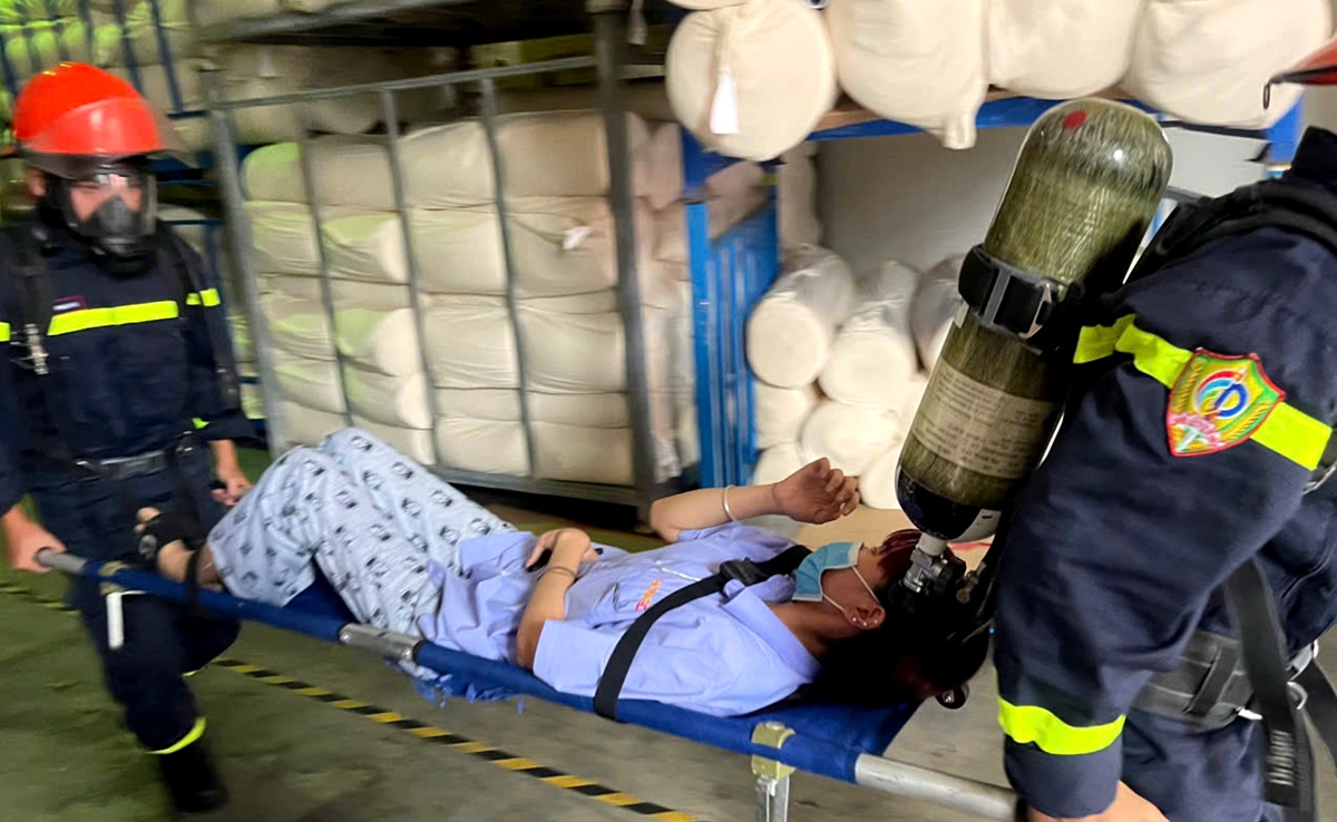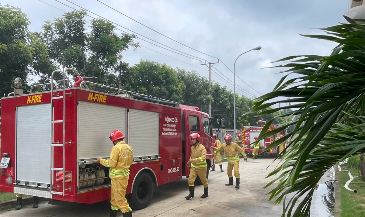 Khi phát hiện, đám cháy có diện tích 40 m2, tỏa ra nhiều khói, khí độc. Nhân viên báo động cho toàn bộ công nhân viên khu vực nhà xưởng. Nghe báo động cháy, công nhân từ nhà xưởng và các xưởng lân cận hoảng loạn thoát nạn ra ngoài gây nên hiện tượng chen lấn, xô đẩy. Ban Giám đốc Công ty huy động lực lượng phòng cháy, chữa cháy và cứu nạn, cứu hộ tại chỗ hướng dẫn dòng người thoát nạn, ổn định tình hình, tiếp cận đám cháy, trực tiếp cứu 02 người bị nạn ra nơi an toàn, tổ chức chữa cháy, thông tin báo cháy cho lực lượng Cảnh sát phòng cháy, chữa cháy và cứu nạn, cứu hộ. Khi lực lượng Cảnh sát phòng cháy, chữa cháy và cứu nạn, cứu hộ đến hiện trường triển khai chữa cháy và cứu nạn, cứu hộ diện tích đám cháy khoảng 283,385 m2, qua nắm thông tin còn 02 công nhân mắc kẹt trong đám cháy.