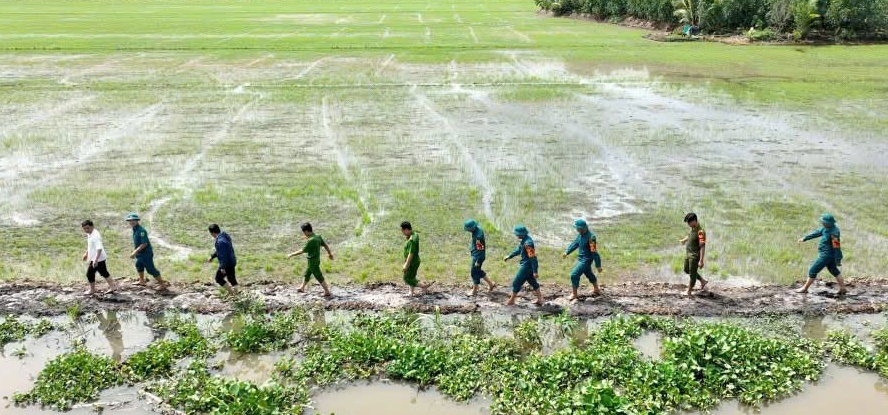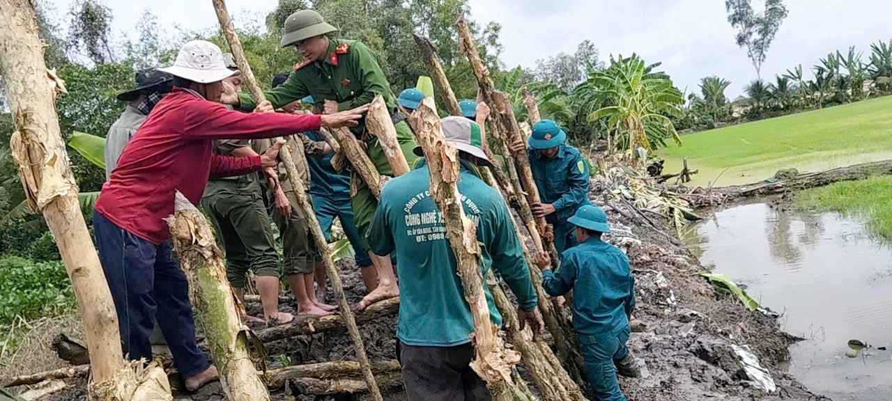 Trong những ngày qua, Công an xã đã huy động hơn 90 lượt cán bộ, chiến sỹ và lực lượng bảo vệ an ninh trật tự cơ sở phối hợp cùng người dân gia cố hơn 200 mét đê bao, góp phần bảo vệ an toàn diện tích lúa, cây ăn trái và tài sản của Nhân dân.