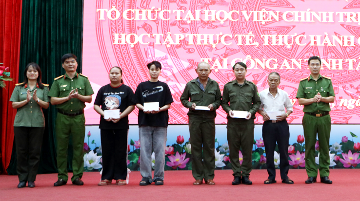 Trong khuôn khổ chương trình, đoàn công tác Học viện Chính trị CAND đã trao tặng quà cho 05 gia đình chính sách, gia đình có hoàn cảnh khó khăn trên địa bàn tỉnh Tây Ninh, thể hiện tinh thần “vì Nhân dân phục vụ”, lan tỏa giá trị nhân văn và trách nhiệm xã hội của người chiến sĩ Công an.