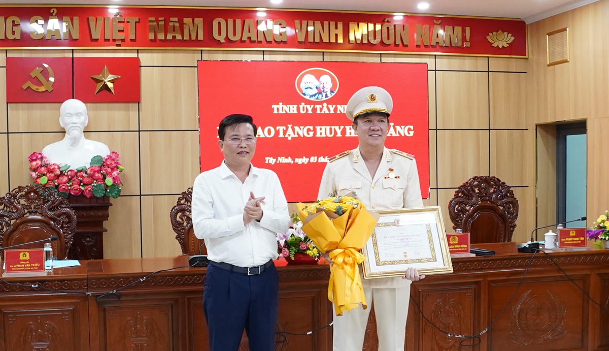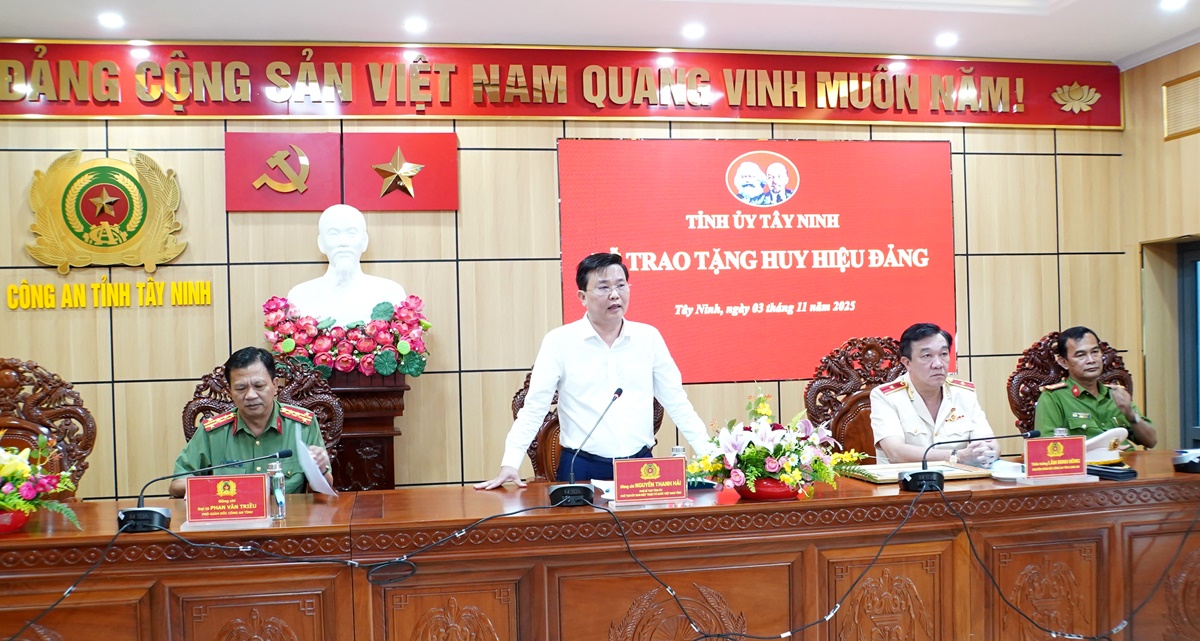 Chiều ngày 03/11/2025, tại Hội trường Công an tỉnh Tây Ninh, Ban Thường vụ Tỉnh ủy Tây Ninh tổ chức Lễ trao tặng Huy hiệu 30 năm tuổi Đảng cho Thiếu tướng Lâm Minh Hồng - nguyên Ủy viên Ban Thường vụ Tỉnh ủy, nguyên Bí thư Đảng ủy, nguyên Giám đốc Công an tỉnh Long An. Đồng chí Nguyễn Thanh Hải - Phó Bí thư Tỉnh ủy, Chủ tịch Ủy ban Mặt trận Tổ quốc Việt Nam tỉnh Tây Ninh chủ trì buổi Lễ.