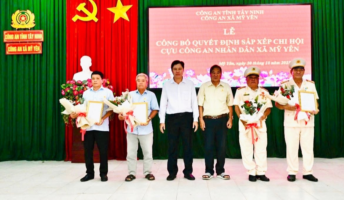 Ngày 30/10/2025, Công an xã Mỹ Yên phối hợp Chi hội Cựu Công an nhân dân xã tổ chức Lễ công bố Quyết định Ban Thường vụ Hội Cựu Công an nhân dân tỉnh Tây Ninh về sắp xếp và chỉ định lãnh đạo Chi hội Cựu CAND xã Mỹ Yên.