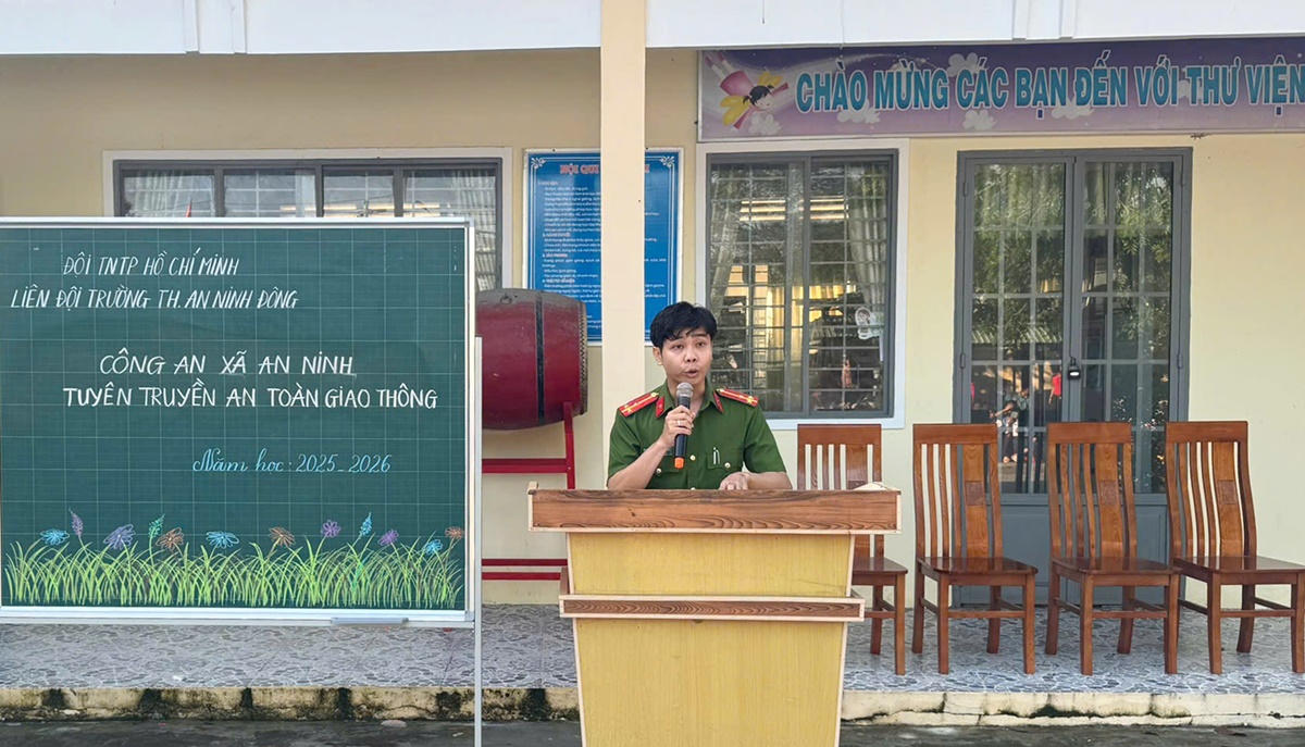 Sáng ngày 04/11/2025, Chi đoàn Công an xã An Ninh phối hợp với Trường Tiểu học An Ninh Đông tổ chức buổi tuyên truyền Luật An toàn giao thông đường bộ và hướng dẫn kỹ năng tham gia giao thông an toàn cho khoảng 800 học sinh, giáo viên và công nhân viên nhà trường.