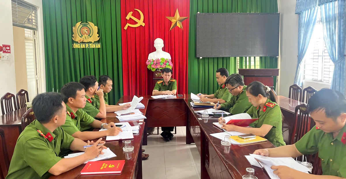 Chi bộ Cảnh sát khu vực tổ chức họp triển khai công tác hướng dẫn người dân đến làm thủ tục hành chính tham gia góp ý trực tuyến thông qua ứng dụng VNeID.