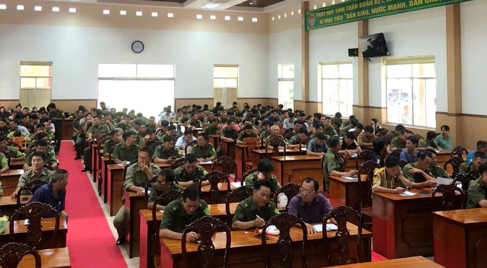 Lực lượng tham gia bảo vệ ANTT ở cơ sở tham gia buổi tuyên truyền.