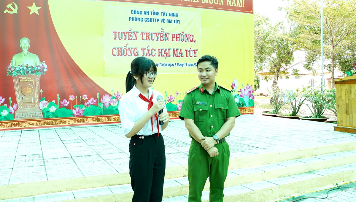 Tại buổi tuyên truyền, cán bộ Phòng Cảnh sát điều tra tội phạm về ma túy Công an tỉnh Tây Ninh thông tin về tình hình tội phạm ma túy và tệ nạn ma túy trên địa bàn tỉnh hiện nay; các nội dung trọng tâm của Luật phòng, chống ma túy và các văn bản pháp luật khác về công tác phòng, chống ma túy; các loại ma túy và tác hại của từng loại ma túy; cách nhận biết ma túy, các loại thực phẩm, đồ uống, thuốc lá điếu, thuốc lá điện tử dễ bị tội phạm lợi dụng pha trộn chất ma túy. Bên cạnh đó, cán bộ tuyên truyền còn hướng dẫn các biện pháp để nâng cao cảnh giác, cung cấp thông tin cho lực lượng Công an khi phát hiện tội phạm ma túy “núp bóng” để kịp thời đấu tranh, ngăn chặn, xử lý nghiêm theo quy định của pháp luật.