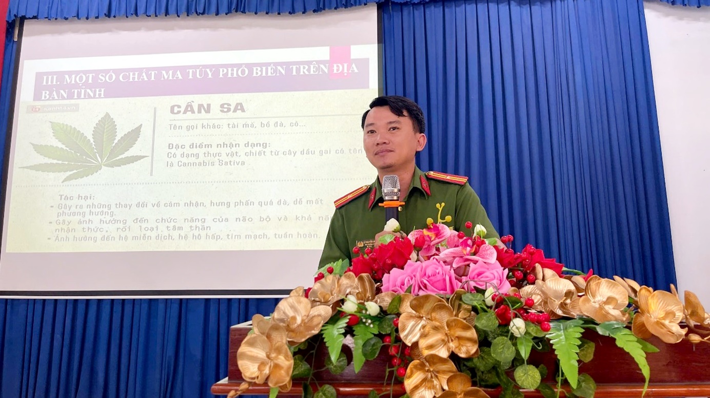 Công an xã Vĩnh Hưng tuyên truyền pháp luật về đảm bảo trật tự, an toàn giao thông và phòng chống ma túy trong học đường