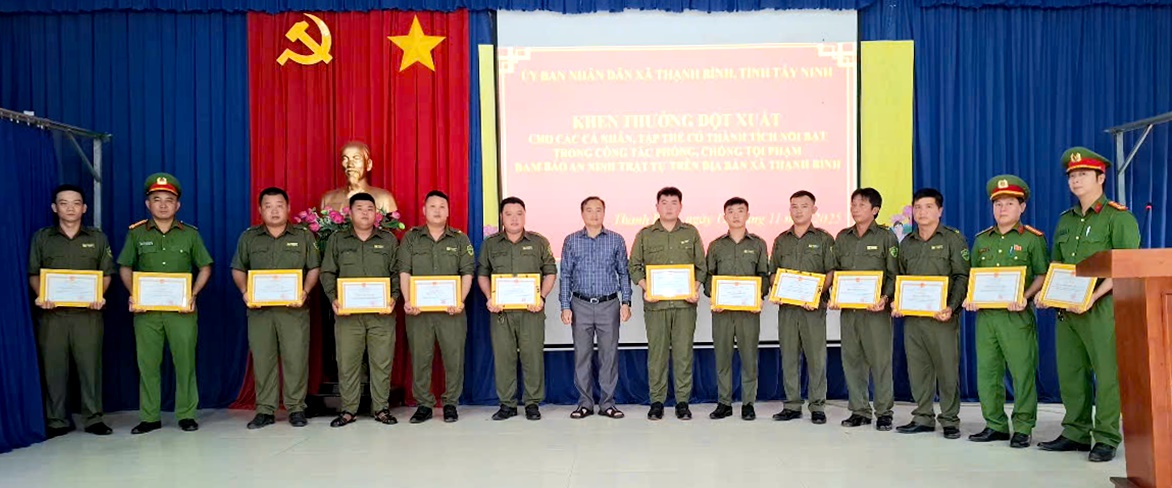 Để kịp thời ghi nhận và động viên tinh thần chiến đấu của các đồng chí, UBND xã Thạnh Bình quyết định khen thưởng đột xuất cho tập thể Công an xã Thạnh Bình, 13 cá nhân đã lập thành tích xuất sắc trong công tác đấu tranh, phòng chống tội phạm.