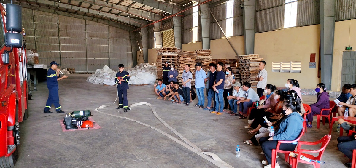 Tại đây, cán bộ Đội Chữa cháy và Cứu nạn cứu hộ đã cung cấp kiến thức về các nguyên nhân gây cháy phổ biến tại cơ sở sản xuất như chập điện, phát sinh tia lửa khi vận hành máy móc, bảo quản vật liệu dễ cháy không đảm bảo, bất cẩn khi dùng nguồn nhiệt… đồng thời nhấn mạnh trách nhiệm pháp lý của cơ sở và cá nhân khi để xảy ra cháy gây hậu quả nghiêm trọng, giúp người lao động nắm vững các quy định trong pháp luật về PCCC.