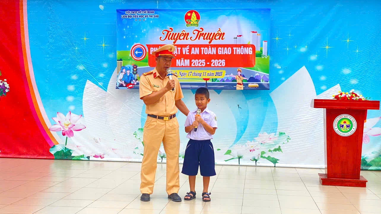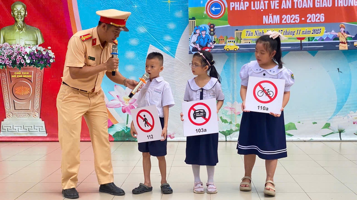 Sáng 17/11/2025, Phòng Cảnh sát giao thông Công an tỉnh Tây Ninh tổ chức buổi tuyên truyền pháp luật về trật tự an toàn giao thông (TTATGT) và hướng dẫn kỹ năng an toàn giao thông cho trên 1.300 là giáo viên và học sinh của trường Tiểu học Võ Thị Sáu thuộc phường Tân Ninh, tỉnh Tây Ninh.