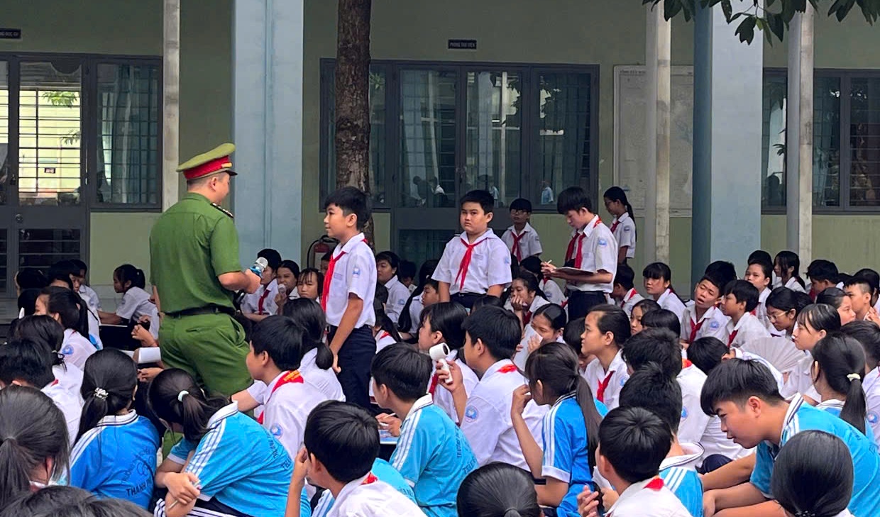 Tại buổi tuyên truyền, cán bộ Công an phường phổ biến các quy định của pháp luật về một số nội dung liên quan đến công tác đảm bảo trật tự an toàn giao thông; tác hại do tai nạn giao thông gây ra; tình trạng vi phạm Luật An toàn giao thông đường bộ của các đối tượng là học sinh trên địa bàn phường, nhất là việc tham gia giao thông không đội mũ bảo hiểm khi ngồi trên xe mô tô, xe gắn máy, xe đạp điện; tình trạng phóng nhanh, vượt ẩu, lạng lách, đánh võng, đua xe trái phép… Đồng thời, phổ biến những nội dung cơ bản về Luật Phòng chống Ma tuý, tác hại của ma tuý đối với lứa tuổi học đường.