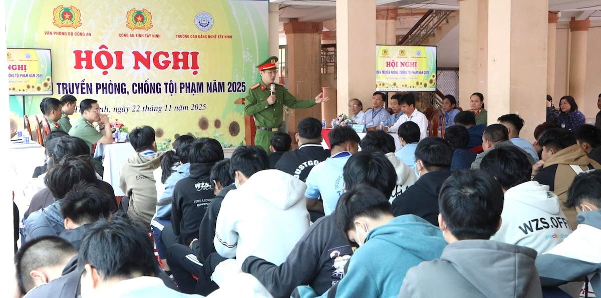 Ngày 24/11/2025, Văn phòng Bộ Công an và Công an tỉnh Tây Ninh phối hợp tổ chức tuyên truyền tại Trường Cao đẳng nghề Tây Ninh với sự tham dự của hơn 600 giáo viên, cán bộ, người dân, học sinh, sinh viên.