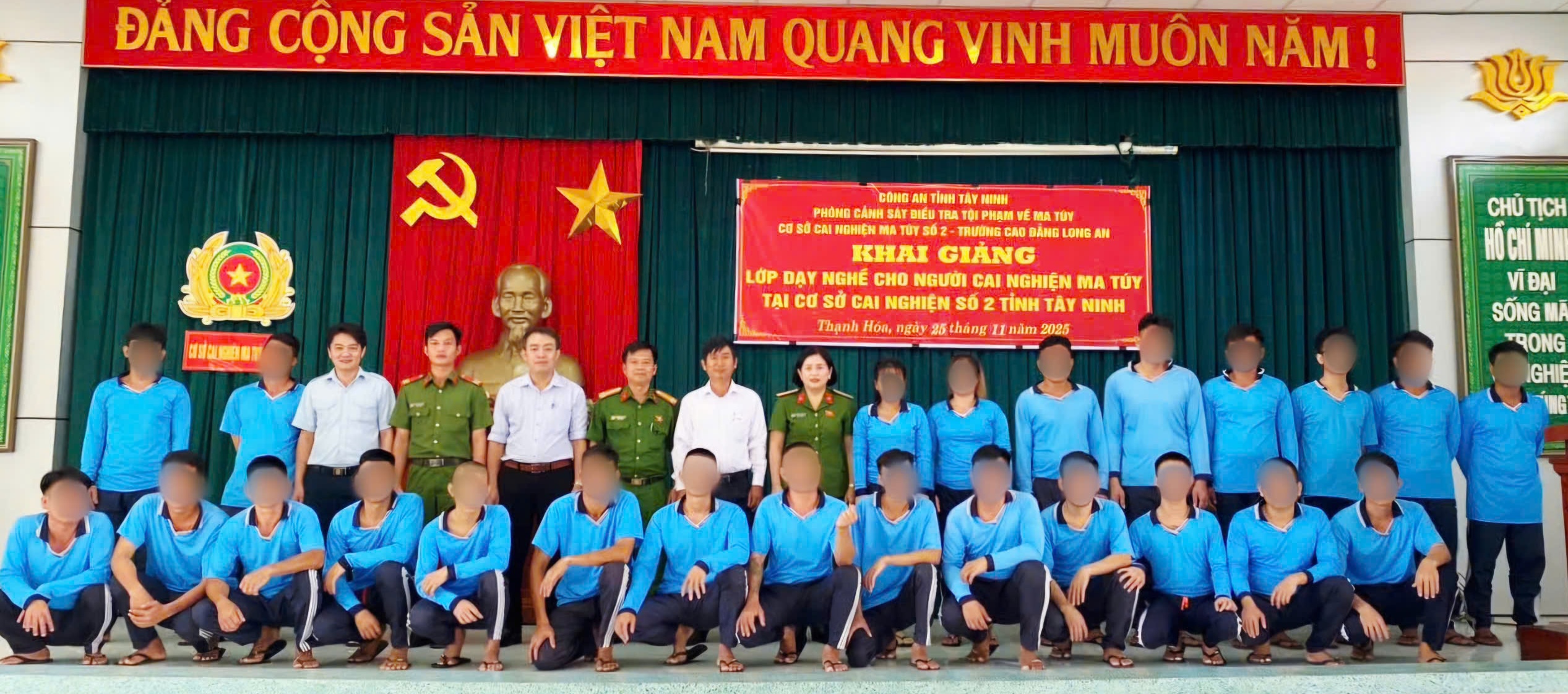 Xác định công tác dạy nghề cho người cai nghiện ma túy có vị trí, vai trò hết sức quan trọng trong quy trình cai nghiện, sáng ngày 25/11/2025, Cơ sở cai nghiện ma túy số 2, tỉnh Tây Ninh phối hợp với Trường Cao đẳng Long An tổ chức Lễ khai giảng lớp đào tạo nghề cho các học viên tại cơ sở.
