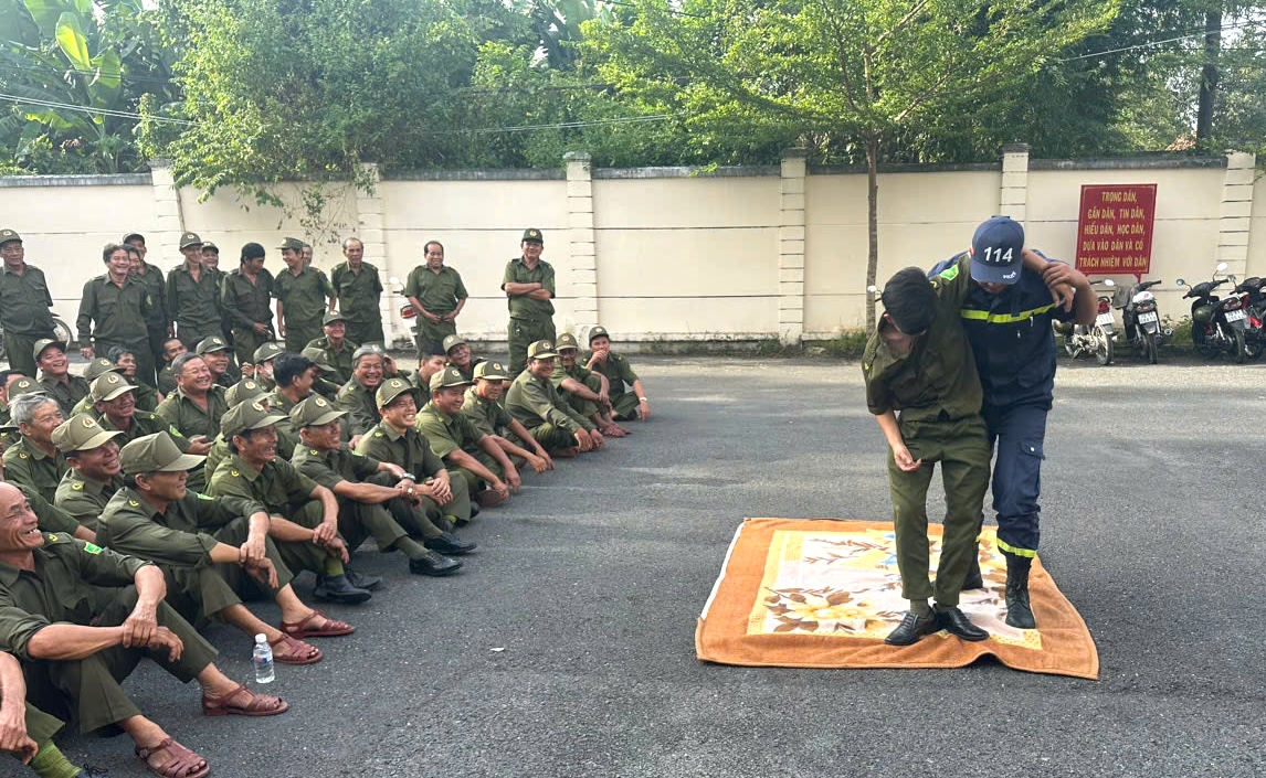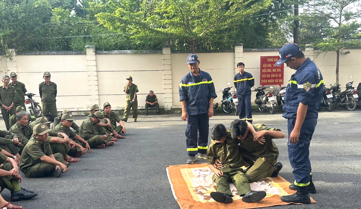 Tại buổi tập huấn các học viên được trang bị những kiến thức cơ bản về Luật PCCC, các văn bản quy phạm pháp luật mới có liên quan, nguyên nhân gây cháy nổ thường gặp tại khu dân cư và hộ gia đình. Đặc biệt, nội dung về kỹ năng thoát nạn an toàn, sơ cấp cứu ban đầu cho người bị nạn trong các tình huống cháy, nổ, tai nạn, sự cố. Cùng với phần lý thuyết, lực lượng tham gia đã được hướng dẫn và tự tay thực hiện các thao tác: sử dụng thành thạo các loại phương tiện chữa cháy tại chỗ như bình chữa cháy xách tay (bột, khí) để dập tắt đám cháy giả định chất rắn, chất lỏng. Quy trình cắt điện khẩn cấp, triển khai các phương tiện CNCH cơ bản; kỹ thuật rải vòi, sử dụng lăng phun nước để chữa cháy ban đầu.