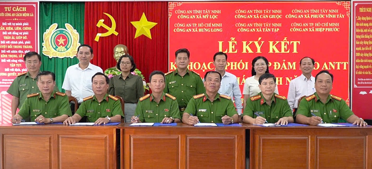 Tham dự Hội nghị có Đại tá Nguyễn Quốc Toàn - Phó Giám đốc Công an tỉnh Tây Ninh; Bí thư Đảng ủy xã Cần Giuộc Phạm Văn Bốn; lãnh đạo UBND và Công an các xã tham gia ký kết.